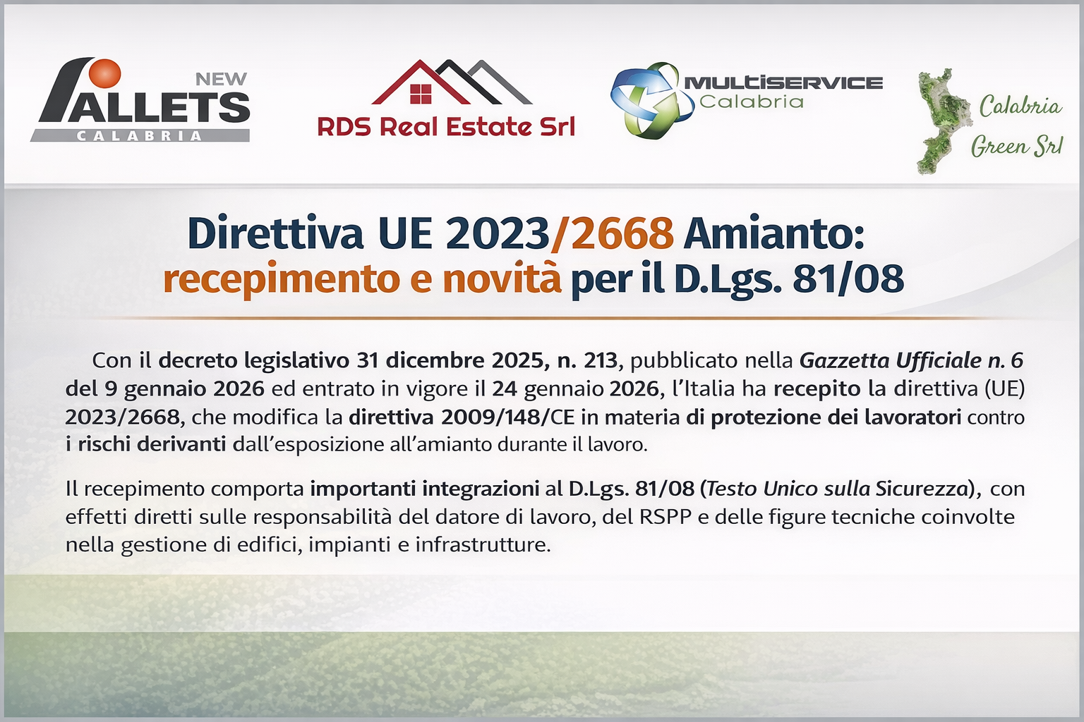 "Direttiva UE 2023/2668 Amianto: recepimento e novità per il D.Lgs. 81/08"